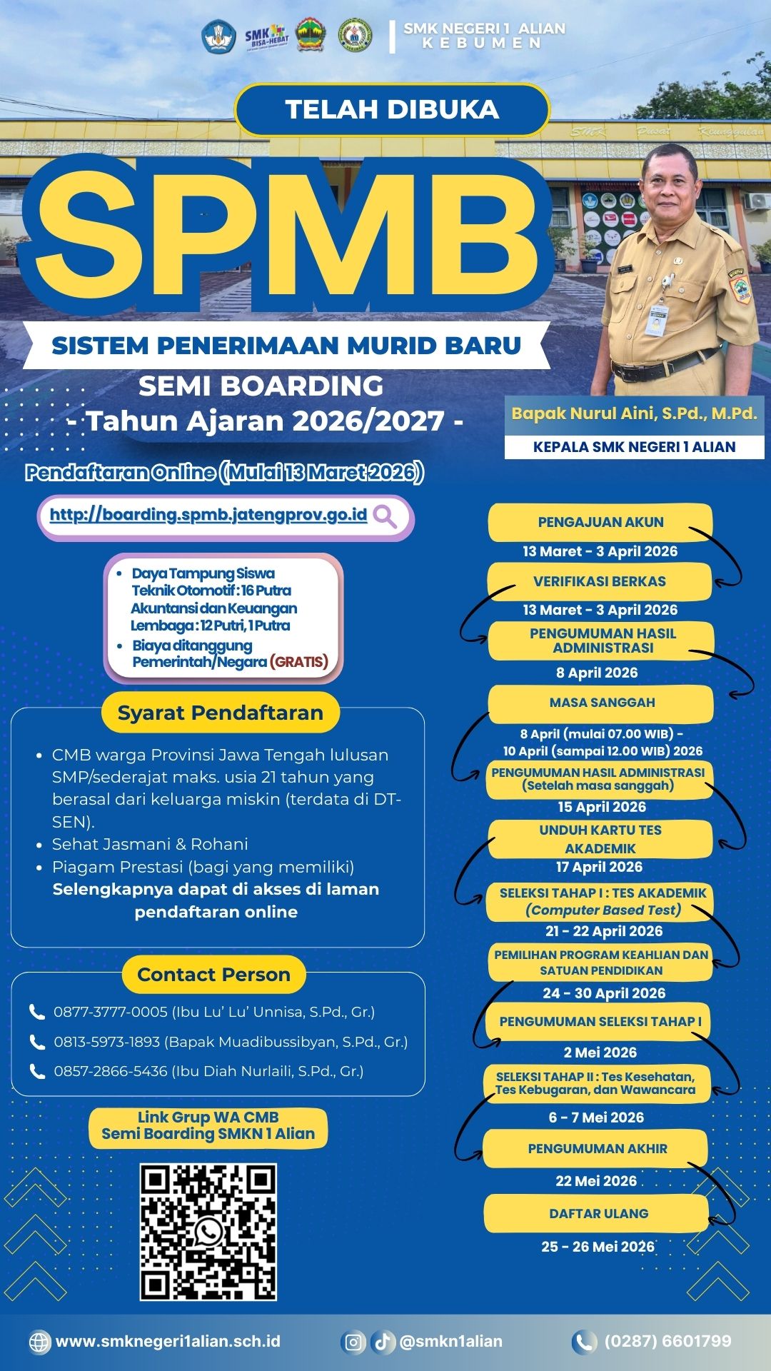 SPMB SEMI BOARDING SMK NEGERI 1 ALIAN TAHUN AJARAN 2026/2027